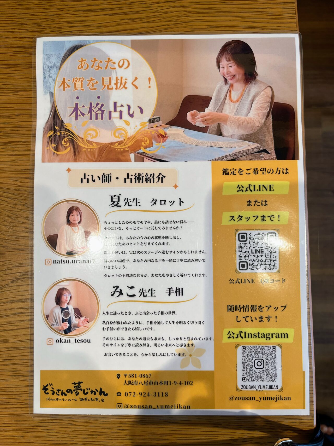 今回始まったタロット鑑定の他、手相占いの日もあります。